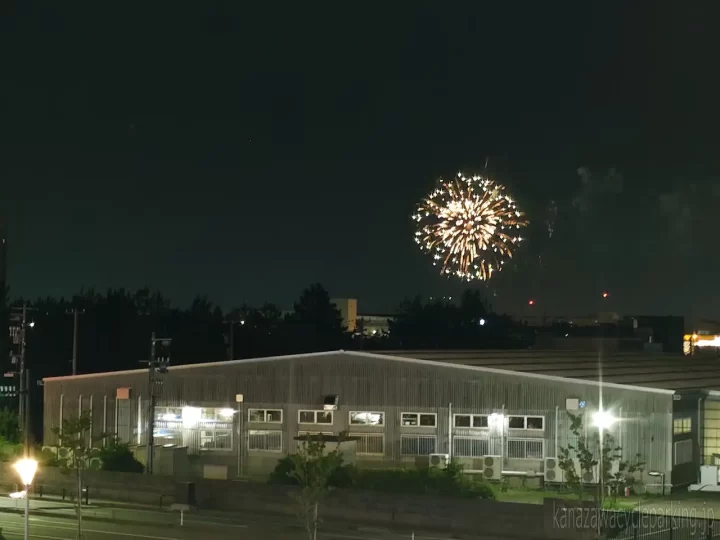 自転車で北國花火金沢大会を犀川周辺の色々な場所で見てみた